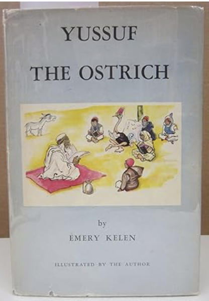 Yussuf the Ostrich is a 1943 children's book by Emery Kelen, a political cartoonist, telling the heroic tale of an educated ostrich in North Africa who helps the U.S. Army fight Nazis during World War II by working as a spy, getting captured, escaping with crucial German battle plans, and ultimately saving the Allied forces. It's known for its whimsical illustrations and themes of loyalty, resistance, and anti-fascism during wartime.