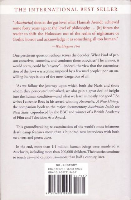 In 'Auschwitz: a new history', documentarian Laurence Rees excavates a wealth of information and offers a new perspective in his shocking portrait of this most infamous death camp. Informed by more than a hundred original interviews with survivors and Nazi perpetrators, Rees's study exposes the inner workings of the camp in unprecedented detail -- from the continually refined techniques of mass murder to the shrewd psychological manipulations of inmates, and from the unimaginable living conditions to the bizarre microcosms that emerged, such as the brothel and the dining hall, where the line between guard and prisoner became surprisingly blurred. -- dust jacket