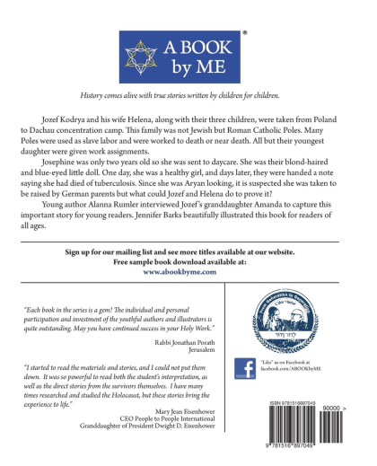 Jozef Kodyra, was an American citizen born July 7, 1913 in New York. His birth in America made him a U.S. citizen. His family moved to Poland to work his family farm. He worked alongside his father on their farm and also, he worked for the Polish Embassy. He married and had children. In 1939, the Nazis invaded Poland and took the entire family to Dachau concentration camp as slave labor. They were taken, not because they were Jews, but because they were Polish. Years later, Jozef sat his granddaughter on a footstool and told her these stories. Her memories were shared in Washington D.C. and proven accurate by the United States Holocaust Memorial Museum. This book describes the work Jozef and his family were forced to do in the concentration camp and how their daughter Josephine was reported dead by the Nazis. Since she was blond hair and blue eyed, they suspected that was a lie. After the war, they were sponsored by farmers in Iowa and started a new life.