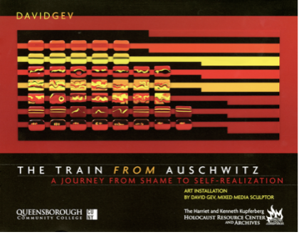 Artist David Gev’s mixed-media sculpture and video installation interprets his father’s journey in a livestock train cart to Auschwitz. His accounts of starvation, coldness, fear, exhaustion, and death are the genesis of Gev’s art. He imagines a colored landscape with ever-changing horizon lines seen through a slit in the wooden panels.