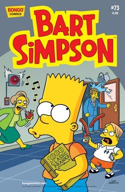 This month, it's a trio of life and death adventures! Bart discovers that the entire town has taken a sudden and life-threatening dislike to him and later risks life and limb when taking a short cut to go to the movies. Finally, it's Lisa who fears for her life when she gets trapped in a corn maze of her own design. Plus, Sergio Aragones presents another pleasing pantomime from 'Maggie's Crib.'