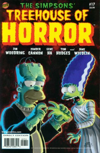 (W/A) Jane Wieldlin, Jim Woodring (W) Zander Cannon (A) Gene Ha Prepare for a trilogy of Halloween treats in this year's terrifying Treehouse of Horror! First, punk rock pixie and Go-Gos founding member Jane Wieldlin (Lady Robotika) leads Marge down the path of the walking dead; then, Zander Cannon and Gene Ha (Top Ten) offer up a remake, Simpsons-style, of the classic horror flick Nosferatu; and finally, indie artist Jim Woodring (Jim) helps Bart uncover the truth behind the biggest mystery in the history of horror comics.