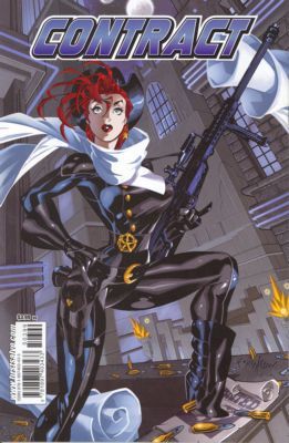 by Maderios, Shell & Various In a capitalist world's dark future, Mercenary is no longer just a soldier for hire. It's a way of life. Law is enforced by cyber-powered Mercs and life or death is decided by the lowest bidder. There is no right or wrong beyond the price in hard currency. Jessie Garrett, however, is everything most Mercs are not: honest, selfless and determined to bring order to greed-hardened worlds, driven mad by money. But when a corporate kidnapping goes wrong, Jessie, and fellow Mercs, Panzer and Tsumi, get in over their heads. Strip clubs, black-market organ dealers, cyber-enhanced soldiers and the life of one young girl collide in Contract's first 3-part mini-series, and no one can predict the cost. Ships with 2 covers in a 50/50 ratio.
