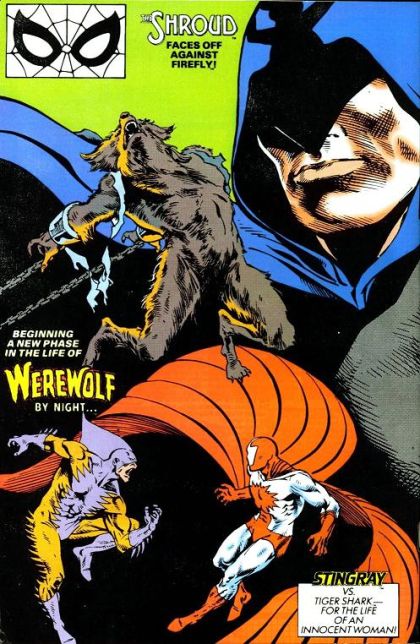The Dark Light of Kali - Blinded by the branding iron of the mysterious Cult of Kali, the Shroud gained a mystical extra-sensory perception and the power to manipulate darkness. Pretending to be a criminal gang, the Shroud leads his band of misfits, the Night Shift - in his battle against the Los Angeles underworld!