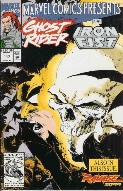 4 sizzlling adventures are presented here starting with the 6-part Wolverine/Venom story line by Howard Mackie and Sam Keith. Giant Man continues with part 5, and Lockheed teams up with Devil Dinosaur to take out the Technet as drawn by fan favorite artist Ron Lim and written by Skip Dietz. Finally, Ghost Rider and Iron Fist continue their confrontation with the demon D'Kay. This time, it's on D'Kay's home turf!