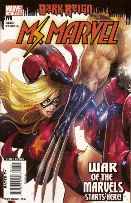 The old Ms. Marvel and the new Ms. Marvel appear to be fighting their way through downtown L.A., leaving a significant path of destruction behind them. The Sentry is sent to intervene.