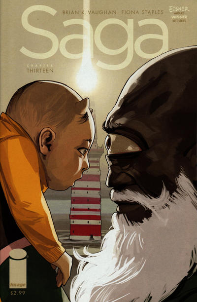 THE SMASH-HIT, CRITICALLY ACCLAIMED SERIES RETURNS! Now that you've read the first two bestselling collections of SAGA, you're all caught up and ready to jump on the ongoing train with Chapter Thirteen, beginning an all-new monthly sci-fi/fantasy adventure, as Hazel and her parents head to the planet Quietus in search of cult romance novelist D. Oswald Heist.