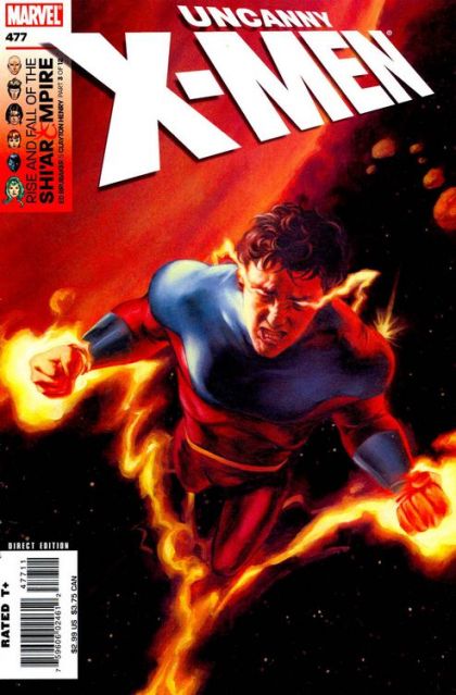 Vulcan makes his way towards the Shi'ar throneworld on Chandilar. Learning that he will need a Shi'ar starship to travel through the stargates, he commandeers a Shi'ar warship, and destroys each stargate as he passes through it. As he enters the inner regions of the Shi'ar empire, he is challenged by the Shi'ar Imperial Guard.