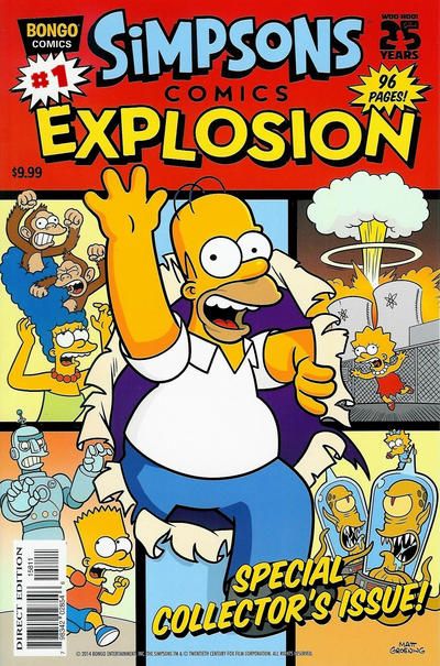 Bongo presents a new, explosive, oversized, 96-page, annual comic collection with loads of highly-charged, Simpson-sational stories from cover to cover. Homer Simpson becomes television's newest reality star as his bottomless appetite and cast iron stomach are put to the test and pushed to the limits week after week on Man Vs. Beast Vs. Food. Bart and Ralph are teamed together as part of a new program called Kid Cops, but when it comes down to it, which one is the good cop, and which one is the bad cop? Then the subhuman grade cuisine in the Springfield Elementary cafeteria is replaced by the best that the school food service industry has to offer, making the students healthier and smarter and leading to one thing world domination! This bountiful and bomb-tastic annual will blow your mind to smithereens!