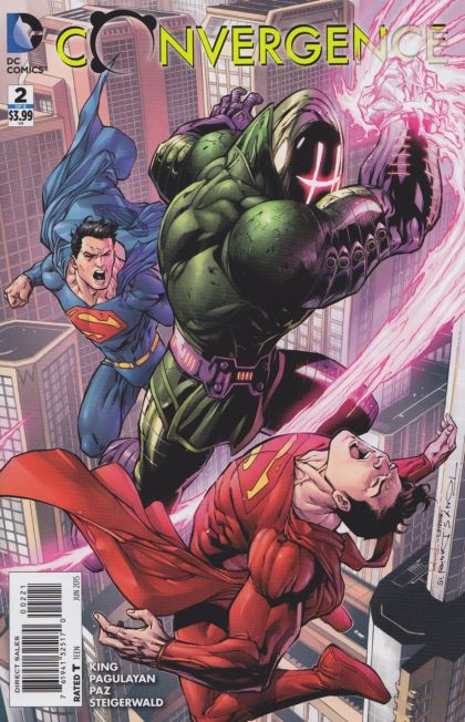 As Telos, the Planet Incarnate, easily defeats the survivors of Earth 2, Thomas Wayne and Dick Grayson set off to find help in the pre-Flashpoint Gotham City. The emotional implication of these worlds colliding comes crashing down when Thomas Wayne confronts this world's Batman, as father meets son! Plus, Alan Scott's attempts to connect with The Green yield unexpected results, setting our team on a quest to escape the planet. And the cyborgs of Futures End engage in a battle to the death against the reimagined heroes of the Just Imagine Universe, while the city of Superman Red and Blue takes on the opposing forces from GENERATIONS!