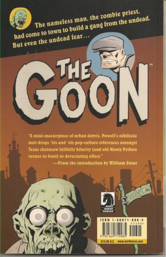 ERIC POWELL Bones will be broken and heads will roll! The Goon is a laugh-out-loud, action-packed romp through the streets of a town infested with zombies. An insane priest is building himself an army of the undead, and there's only one man who can put them in their place: the man they call Goon. Dark Horse celebrates the launch of our new Goon bi-monthly series with this collection of last year's Goon series and The Goon Color Special, originally published by Albatross Exploding Funny Books; presented here for the first time in full-color.