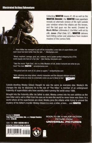 Wanted Trade Paperback (NEW printING) (W) Mark Millar (P/I) J.G. Jones (C ) Paul Mounts New cover art by J.G. Jones! Collecting Wanted #1-#6 as well as the Wanted: Dossier, this trade paperback collection reveals an alternate version of the world right outside your window where the villains are the heroes and the bad guys run the world. Nominated in 2006 for the Eisner awards the Wanted trade paperback delivers hard hitting action and adventure from modern masters of the comics field. SC, 7x10, 192pgs, FC $19.99