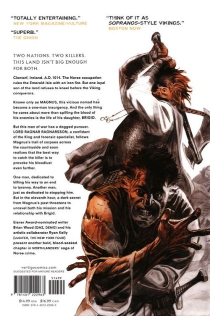 Written by Brian Wood Art by Ryan Kelly Cover by Massimo Carnevale The second NORTHLANDERS collection, featuring issues #11-16, takes place during the tail end of Viking rule in Ireland. A series of mysterious murders and arsons against wealthy citizens leaves the Viking occupiers worried that a potential uprising might ignite. When surprising details involving the crimes are revealed, though, their jobs become much harder! Once again, writer Brian Wood teams with artist Ryan Kelly (Local) for an intriguing, gorgeously rendered peek at the inner workings of society. Advance-solicited; on sale July 29 ? 144 pg, FC, $14.99 US MATURE READERS