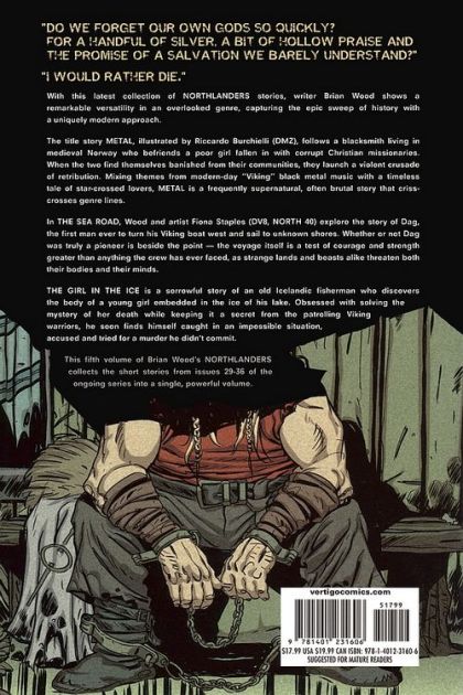Written by BRIAN WOOD ? Art by RICCARDO BURCHIELLI, FIONA STAPLES and BECKY CLOONAN ? Cover by MASSIMO CARNEVALE Collected from issues #29-36: When blacksmith Erik liberates Ingrid from her corrupt, Christian missionary captors, they set out to live by the 'old ways,' hoping to find something they can feel is their own. The Church won't let them go so easily, though, and sets out to bring them back by any means necessary. On sale JULY 6 ? 192 pg, FC, $17.99 US ? MATURE READERS