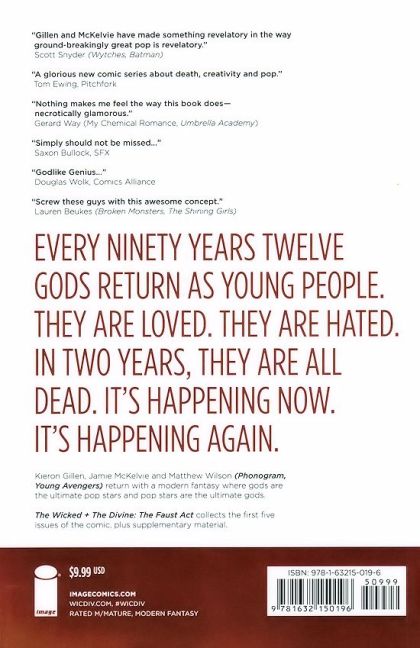 Every ninety years, twelve gods incarnate as humans. They are loved. They are hated. In two years, they are dead. The team behind critical tongue-attractors like Young Avengers and PHONOGRAM reunite to create a world where gods are the ultimate pop stars and pop stars are the ultimate gods. But remember: just because you're immortal, doesn't mean you're going to live forever. Collects THE WICKED + THE DIVINE #1-5