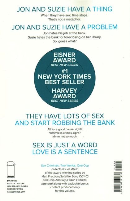 The second storyline from the Eisner-award winning SEX CRIMINALS finds the honeymoon to be over for Jon and Suzie. Once the thrill of new lust fades, where do you go? Come along and laff and love with Matt and Chip as they brimp back ceaselessly against the past.
