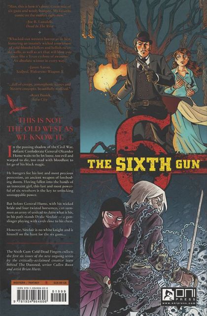 (W) Cullen Bunn (A/C) Brian Hurtt During the darkest days of the Civil War, wicked cutthroats came into possession of six pistols of otherworldly power. In time, the Sixth Gun. the most dangerous of the weapons, vanished. When the gun surfaces in the hands of an innocent girl, dark forces reawaken. Vile men thought long dead set their sights on retrieving the gun and killing the girl. Only Drake Sinclair, a gunfighter with a shadowy past, stands in their way.