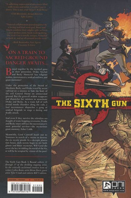 Traveling by secret railroad, Becky and Drake accompany an order of mysterious monks on a quest to bury General Hume's body on holy ground. But Malevolent forces spurred by a sinister necromancer stage a terrifying attack on the train-Drake vanishes without a trace. Alone, Becky continues her journey to a secluded mountain fortress where she discovers how deeply her fate is entwined with that of The Sixth Gun. Meanwhile, Gord revisits a haunted mansion from his past hoping to discover a means to destroy the Six, but the ghosts he stirs have no intention of letting his quest continue.