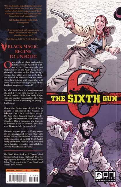 The Six. A set of cursed pistols with the power to reshape the world. The Knights of Solomon will stop at nothing to possess this power. Captured, isolated, and tortured, Drake Sinclair is offered a choice: join the Knights' quest or die. Meanwhile, Becky Montcrief's search for Drake brings her to the town of Penance - a mysterious place populated by a host of twisted townsfolk. All the while, the Sixth Gun schemes, and the secrets it holds will shake the very foundations of reality.