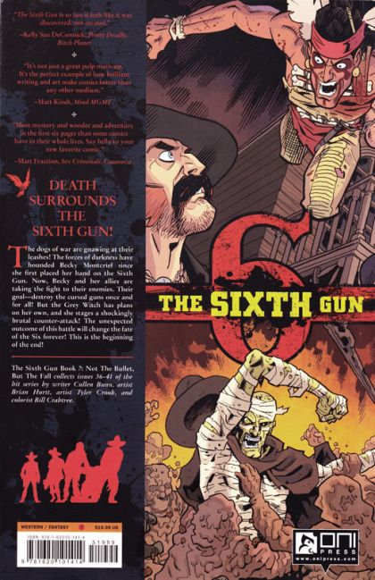 The dogs of war are gnawing at their leashes! The forces of darkness have hounded Becky Montcrief since she first placed her hand on the Sixth Gun. Now, Becky and her allies are taking the fight to their enemies. Their goal-destroy the cursed guns once and for all! But the Grey Witch has plans on her own, and she stages a shockingly brutal counter-attack! The unexpected outcome of this battle will change the fate of the Six forever! This is the beginning of the end!