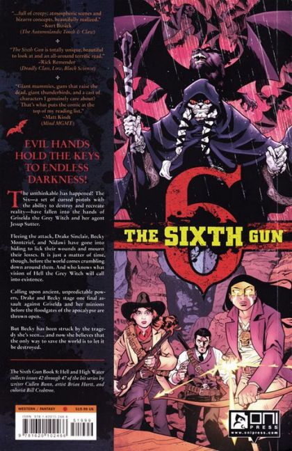 The unthinkable has happened! The Six—a set of cursed pistols with the ability to destroy and recreate reality—have fallen into the hands of Griselda the Grey Witch and her agent Jesup Sutter. Fleeing the attack, Drake Sinclair, Becky Montcrief, and Nidawi have gone into hiding to lick their wounds and mourn their losses, It is just a matter of time, though, before the world comes crumbling down around them. And who knows what vision of Hell the Grey Witch will call into existence. Calling upon ancient, unpredictable powers, Drake and Becky stage one final assault against Griselda and her minions before the floodgates of the apocalypse are thrown open. But Becky has been struck by the tragedy she’s seen,., and now she believes that the only way to save the world is to let it be destroyed.