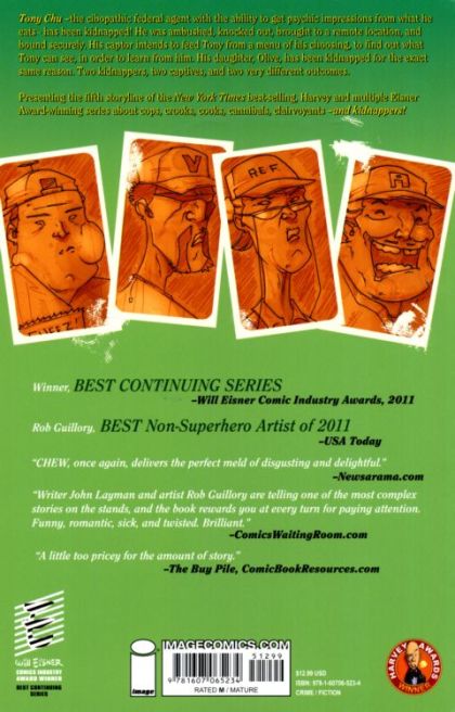 Tony Chu - the cibopathic federal agent with the ability to get psychic impressions from what he eats - has been kidnapped. He was ambushed, knocked out, brought to a remote location, and bound securely. His captor intends to feed Tony from a menu of his choosing, to find out what Tony can see, in order to learn from him. His daughter Olive has been kidnapped for the exact same reason. Two kidnappers, two captives, and two very different outcomes. Presenting fifth storyline of the New York Times Best Selling, Harvey and multiple Eisner Award-winner series about cops, crooks, cooks, cannibals, clairvoyants - and kidnappers!
