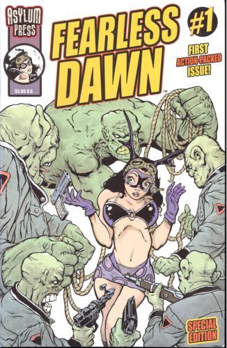 (W/A) Steve Mannion Jet riding good girl Fearless Dawn battles her arch nemesis Helga Von Krause in this mini-series from Steve Mannion. Fearless Dawn infiltrates the vaunted 'Manitoba Sector' to discover the secret behind Helga's chemically-induced Nazi Monsters. Meanwhile, all is not well back at home base when Fearless Dawn's boss discovers our hero has broken probation and flown the coop!
