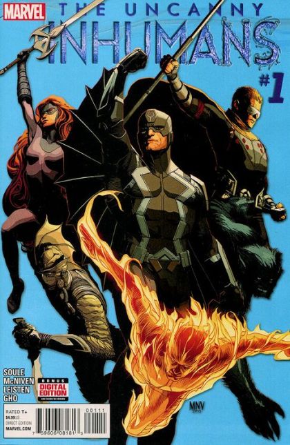 Meet the Uncanny Inhumans. MEDUSA! BLACK BOLT! TRITON! READER! HUMAN TORCH?! BEAST?! It's eight months later and everything is different for the Inhumans. Medusa and Johnny Storm are an item. Black Bolt is running covert missions of his own. And something so big happened between the Inhumans and the X-Men that Beast is now on the side of the Inhumans. And if that's not enough, the most dangerous villain throughout Marvel's history is against them-KANG THE CONQUEROR. Don't miss what the epic team behind DEATH OF WOLVERINE (Charles Soule and Steve McNiven) have in store for you. All this plus a bonus story by Charles and Brandon Peterson (UNCANNY X-MEN). Rated T+