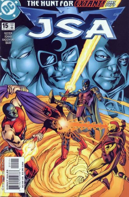 The entire JSA, along with Dove and Metron, confront Extant in his universe. Dove dies again, saving Hourman, then the rest of the Heroes split up and attack Extant all along his personal timeline, until Atom Smasher manages to remove the Worlogog from him. The universe resets itself, with the original Star-Spangled Kid fading away again. Extant jumps into a time tunnel to escape, and is pursued by Metron and Atom Smasher, who use the Worlogog to exchange Extant for Terri Rothstein before her plane crashes. Hourman, Starman, Hippolyta, Atom Smasher, and Dr. Fate all leave the JSA.
