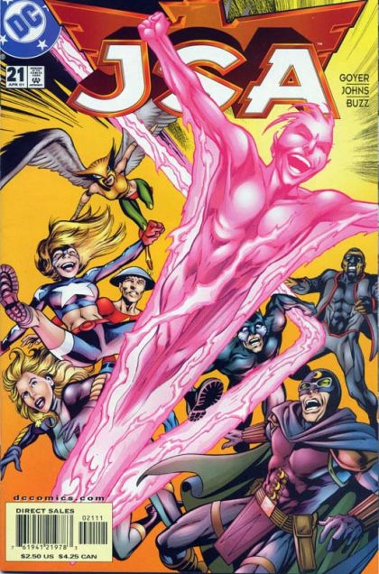 Winding down after the battle with the Injustice Society, Black Adam is trying to join the JSA, Hawkgirl is troubled by blackouts and nightmares, and finds out things about herself from Zauriel. Wildcat talks to Killer Wasp and discovers the fate of his kidnapped son while Alan Scott finds out his son is still alive. Dinah Lance and Pieter Cross finally have a quiet date and Flash gets shown around in ancient Egypt. And Mr. Terrific overhears a conversation between Star-Spangled Kid and Jakeem Thunder that makes him smile.