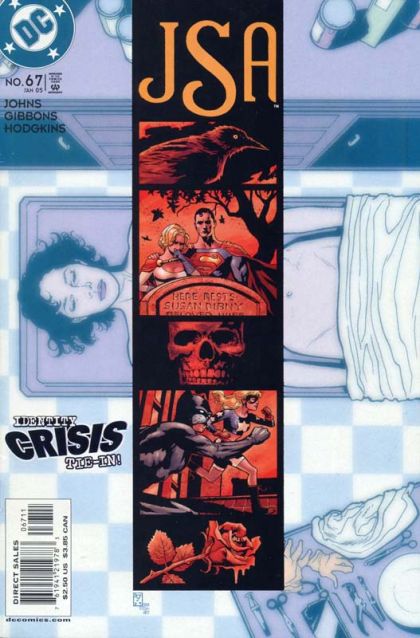 The heroes of the JSA react to the murder of Sue Dibney, seeing to their loved ones and searching for who was responsible. Dr. Mid-Nite and Mr. Terrific perform the autopsy, trying to find clues to the identity of her killer.In 1951, Johnny Thunder is trying to convince the Atom that he should keep fighting and not quit the JSA, but Atom believes that the JSA is finished. The House Un-American Activities Committee has killed it. Per Degaton has been watching and is glad it is time to proceed.