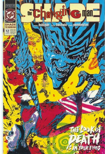 Part 2 of 3. Shade struggles with Troy Grenzer, the psychotic killer whose body he inhabits and who still lives within his mind, in a devastating battle that takes Shade and Kathy beyond the edge of sanity. Written by Peter Milligan, with art by Chris Bachalo and Mark Pennington. Painted cover by Brendan McCarthy. Suggested for Mature Readers. New Format. Cover price $1.50.
