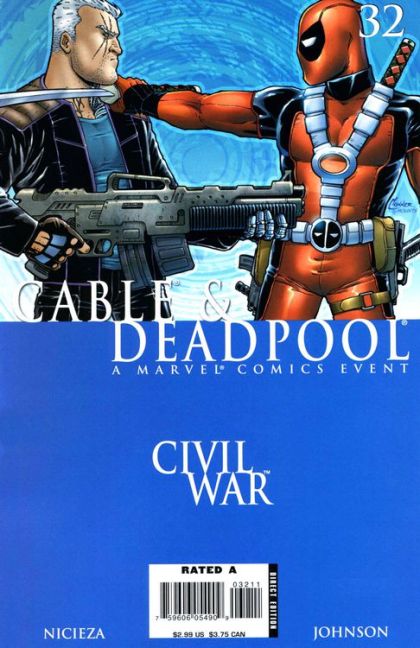 Deadpool takes on Cable in the Oval Office, but can't get through Cable's gravimetric sheild. The two are teleported to France, where the fight continues. This time, however, Cable has the system rigged to broadcast the entire event over the infonet, just in case Deadpool says something stupid. This is Deadpool. He always says something stupid. (Unless his mouth is duct taped shut.)