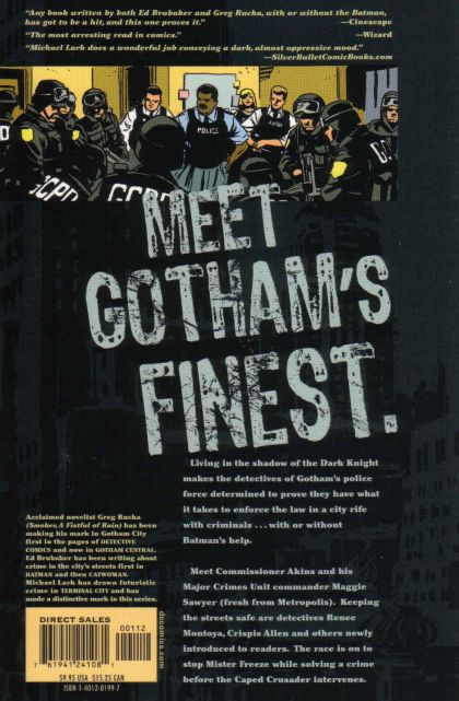 Written by ED BRUBAKER and GREG RUCKA Art and cover by MICHAEL LARK The first ten issues of the Eisner and Harvey Award-winning series are collected in softcover for the first time! Written by Ed Brubaker (Captain America) and Greg Rucka (DETECTIVE COMICS, 52), this series pits the detectives of Gotham City's Special Crimes Unit against the city's greatest villains - in the shadow of Batman himself. On sale MARCH 9 - 240 pg, FC