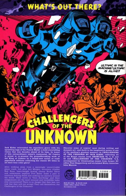 At last, DC collects Jack Kirby's run of adventure epics from SHOWCASE #6, 7, 11 and 12 and CHALLENGERS OF THE UNKNOWN #1-8 in a single paperback volume! These are the tales that introduced Ace Morgan, Red Ryan, Rocky Davis and Professor Haley-four men living on borrowed time, determined to face-and overcome-adversity in the form of monsters, aliens and would-be world conquerors!