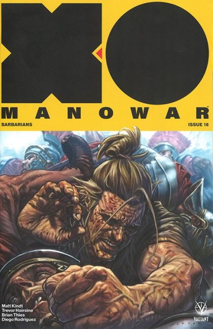 As HARBINGER WARS 2 rages...witness the birth of "BARBARIANS"! Long ago, on the bloodstained battlefields of centuries past, Aric of Dacia cut a swath through the armies of the ancient world as a brash but cunning warrior - and all without the X-O Manowar armor. Now, the untold story of Aric's swashbuckling youth - and how it unknowingly forged his fate as the defender of 21st century Earth - can finally be told as the man who would be X-O Manowar leaves the Visigoth homeland behind to infiltrate the Roman Empire's gleaming capital from within! New York Times best-selling author Matt Kindt (HARBINGER WARS 2, DIVINITY) and blockbuster artist Trevor Hairsine (DIVINITY) reunite to repel the rising tide of Roman invasion with a compelling new tale of death, fortune, and glory torn from the age of empires!