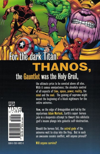 Written by JIM STARLIN Penciled by GEORGE P?REZ & RON LIM Cover by GEORGE P?REZ It's the Avengers, the New Warriors, the X-Men and more against the omnipotent Eternal, Thanos! The Mad Titan has become the most powerful being in the universe, and enslavement or destruction may be the only choices he gives it! The successive Starlin sagas that shook space and time start here! Collecting INFINITY GAUNTLET #1-6.