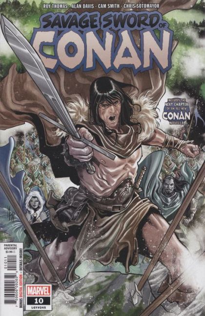 Nearly 50 years after he first brought the Cimmerian to the pages of Marvel Comics, the incredible ROY THOMAS returns to script the SAVAGE SWORD OF CONAN! Teamed with the legendary ALAN DAVIS, get ready for an unforgettable chapter in the saga of Conan, as the barbarian leads a mysterious band of adventurers into the Himelian Mountains in search of a lost comrade. But Conan may get more than he bargained for as the startling truth behind the quest is uncovered! Set before Robert E. Howard's "People of the Black Circle," don't miss the start of this ALL-NEW adventure fleshing out an important period in Conan's history! Plus: The next chapter in the all-new novella "THE SHADOW OF VENGEANCE"! Parental Advisory
