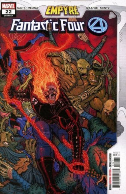 The return of the new Fantastic Four?! • The events of EMPYRE threaten all life on Earth and the future balance of power throughout the cosmos! • And the secret mission that the FF have placed into Valeria and Franklin's hands requires some big-league help! Rated T