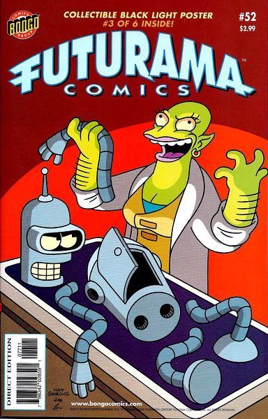 (W) Rogers, Delaney (A) Kazaleh, Davis Looking to put the shine back in his shiniest body part, Bender undergoes a series of robotic enhancements. However, one 'nip' here and one 'tuck' there prove not to be enough for the rejuvenated robot, and before long he is on a path to destruction. Also, Zapp Brannigan shows his mettle and earns a medal. Plus, this issue features the third of six awesome Futurama posters, suitable for unfolding!