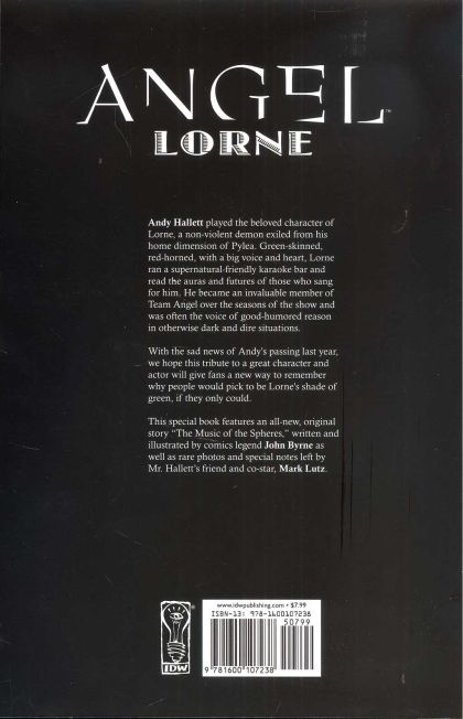The world is in peril (again!), and only the most unlikely member of Angel's entourage is able to save the day. A special book-length tribute to the late Andy Hallett and his character, Lorne, presented by writer-artist John Byrne.