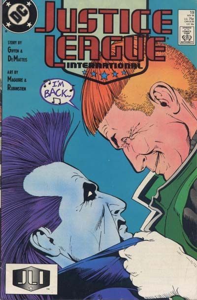 Before the League can stop him, Guy Gardner launches himself at Lobo, attacking him. Forced to intervene, Booster cages Guy in a force field while the others question Lobo who, discovering where he is, decides to wait until Barda and the others return from space whereupon he can fulfill his contract by killing them. As Batman and Max Lord argue over the temporary membership Lord has given Lobo, Oberon takes a call from Black Canary who quits the League.