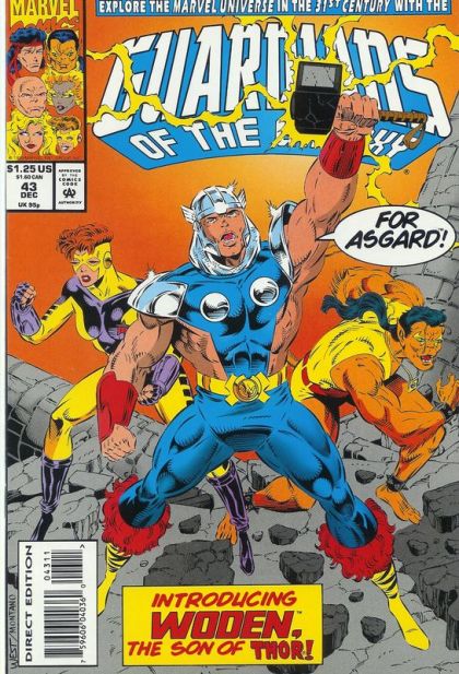 The bizarre being called the Remora still holds Starhawk and Heimdall captive on his distant world. Meanwhile, in Asgard, the Guardians face off against the 31st Century Inhumans, and Thor's son, Woden, is locked in mortal combat against the god of evil, Loki!