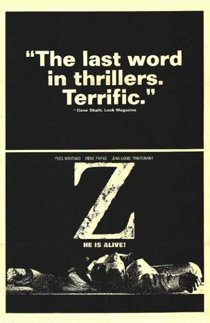 Amid a tense political climate, the opposition leader is killed in an apparent accident. When a prosecutor smells a cover-up, witnesses get targeted. A thinly veiled dramatization of the assassination of Greek politician Grigoris Lambrakis and its aftermath, “Z” captures the outrage at the US-backed junta that ruled Greece at the time of its release.