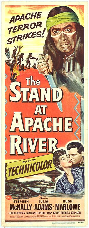Sheriff Lane Dakota captures robbery-murder suspect Greiner just as the latter is wounded in an Apache ambush. At remote outpost Apache River, Lane and his prisoner spend the night with other travelers, including 2 women with a surprising number of fancy dresses. In the morning, who should appear but a band of ostensibly peaceful Apaches strayed from the reservation. And bigoted Colonel Morsby is strongly inclined to shoot first and ask questions afterward...