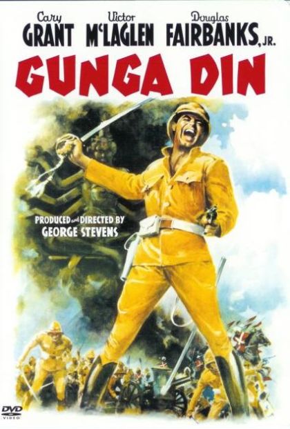 British army sergeants Ballantine, Cutter and MacChesney serve in India during the 1880s, along with their native water-bearer, Gunga Din. While completing a dangerous telegraph-repair mission, they unearth evidence of the suppressed Thuggee cult. When Gunga Din tells the sergeants about a secret temple made of gold, the fortune-hunting Cutter is captured by the Thuggees, and it's up to his friends to rescue him.