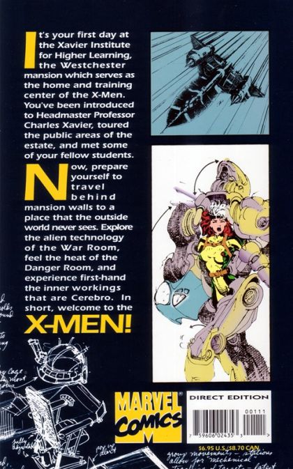 Andy Kubert cover art. Wirebound Cover. Fold out War Room blueprint centerfold. "It's your first day at the Xavier Institute for Higher Learning, the Westchester mansion which serves as the home and training center of the X-Men. You've been introduced to Headmaster Professor Charles Xavier, toured the public areas of the estate, and met some of your fellow students. Now, prepare to travel behind mansion walls to a place that the outside world never sees. Explore the alien technology of the War Room, feel the heat of the Danger Room, and experience first-hand the inner workings of Cerebro. In short, welcome the the X-MEN!" Cover price $6.95.