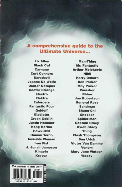 The Official Handbook get sthe Ultimate treatment! This volume contains in-depth bios on Ultimate Spider-Man and the Ultimate Fantastic Four, and all their friends and foes! Plus: An all-new cover by Ultimate Spider-Man artist Mark Bagley, digitally painted by Morry Hollowell.