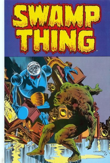 Deluxe (Baxter) format series of Swamp Thing reprints. Cover and interior art by Bernie Wrightson, stories by Len Wein. "The Last of the Ravenwind Witches!" starring Gideon, Linda Holland (flashback), Rebecca Ravenwind (witch), Timothy Ravenwind (her brother), and Swamp Thing; Swamp Thing is rescued from the ocean by Rebecca Ravenwood, who is fleeing her small town after being accused of being a witch. "A Clockwork Horror"; Swamp Thing finds himself in a small town where a German clockmaker has made life-like robots to populate his town; Unfortunately, the Conclave shows up to learn the secret of the robots from Klochmann. "Night Prowler!"; On Christmas Eve, a man and his wife are awakened by the sounds of a prowler in the house. Special Swamp Thing Commentary in which Alan Moore discusses his taking over the writing of the Swamp Thing feature. Bio of Joe Orlando with photo. 52 pgs., full color. $2.00. Cover price $2.00.