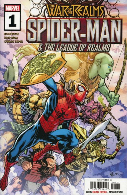 WAR OF THE REALMS TIE-IN! • In order to win the War of the Realms, we need a LEAGUE OF REALMS! • Thor once led this team with one representive from each fantastical realm, but the League has a NEW leader and representative of Midgard- SPIDER-MAN! • Spider-Man must Frodo-Up and lead this ragtag group of SCREWBEARD THE DWARF, UD THE TROLL, RO BLOODROOT THE WIZARD, SIR IVORY HONEYSHOT THE LIGHT ELF and TITANYA THE MOUNTAIN GIANT! But who will represent ASGARD?! • And, as Spidey is a terrible leader, could this team possibly achieve ANYTHING?! Rated T